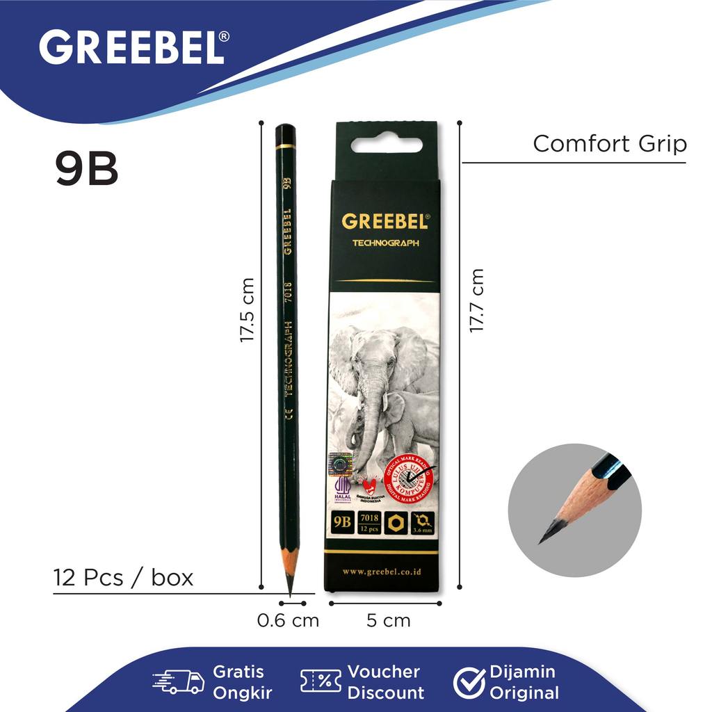 Pensil 9B Greebel merupakan jenis pensil dengan tingkat kehitaman tinggi dan tekstur grafit yang sangat lembut. Ideal untuk seniman, ilustrator, maupun desainer grafis, pensil ini menghasilkan goresan yang tebal, gelap, dan ekspresif, cocok untuk sketsa, shading intens, serta teknik arsir yang dramatis