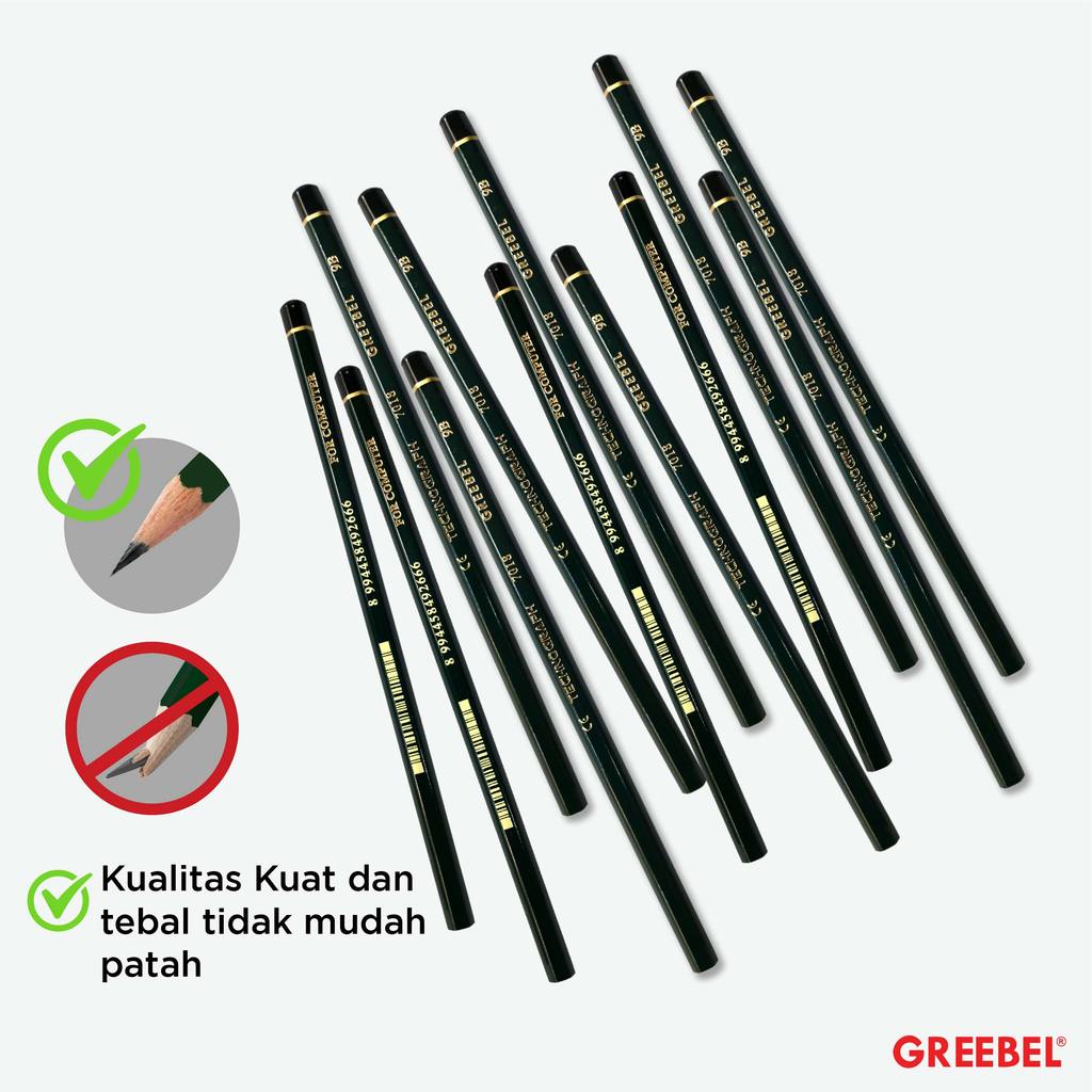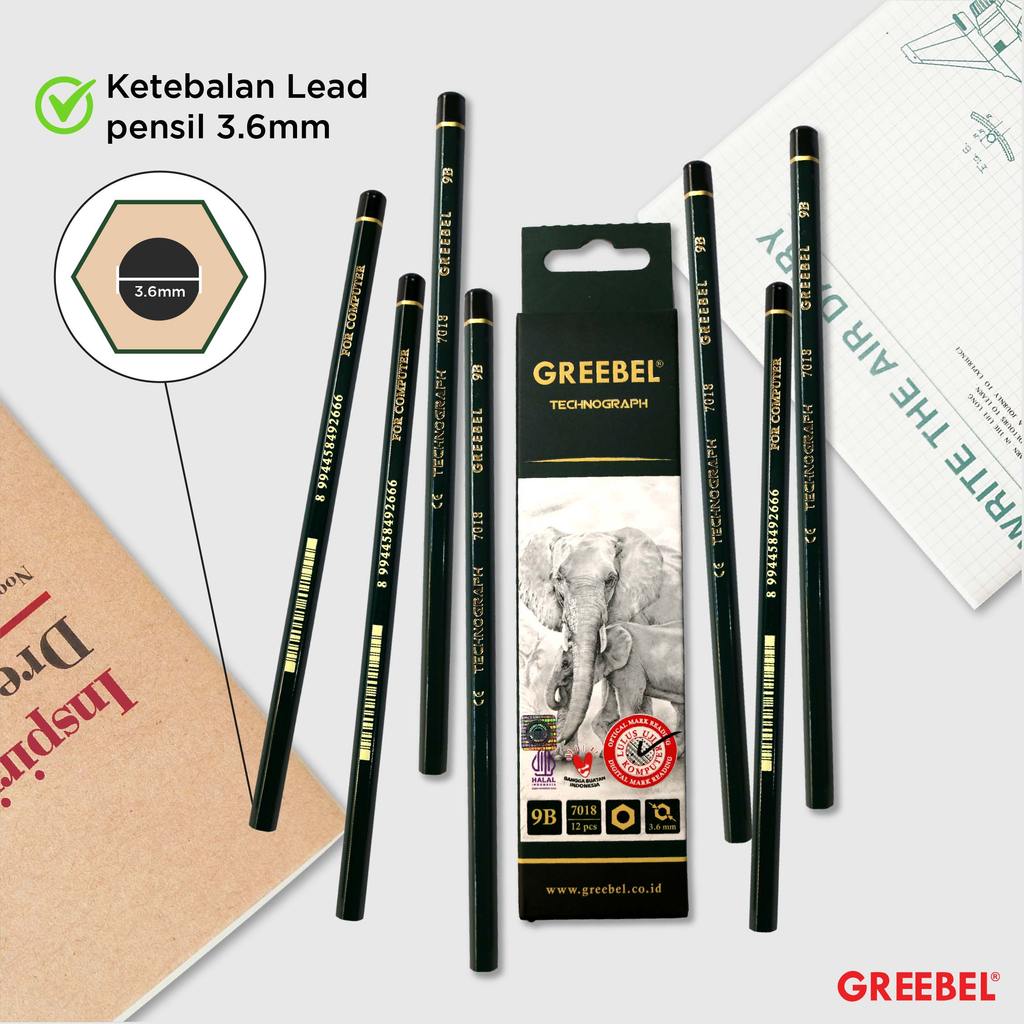 GREEBEL Pensil kayu 9B 7018 (12PCS/SET) / Pensil Tulis Ujian Sekolah Pensil Gambar