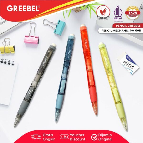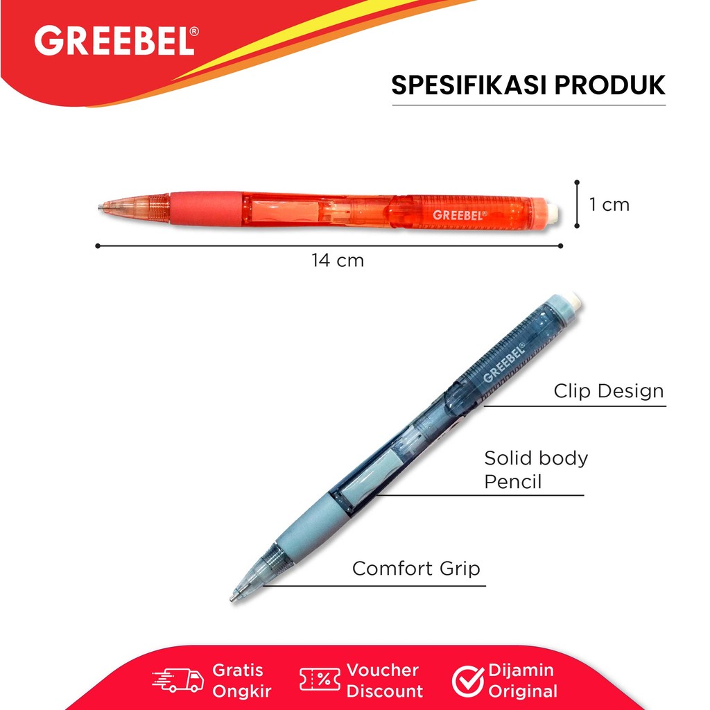 GREEBEL Pensil Mekanik PM-008 Click (1PCS) / Mechanical Pencil Penghapus / Propelling Pencil Mechanic