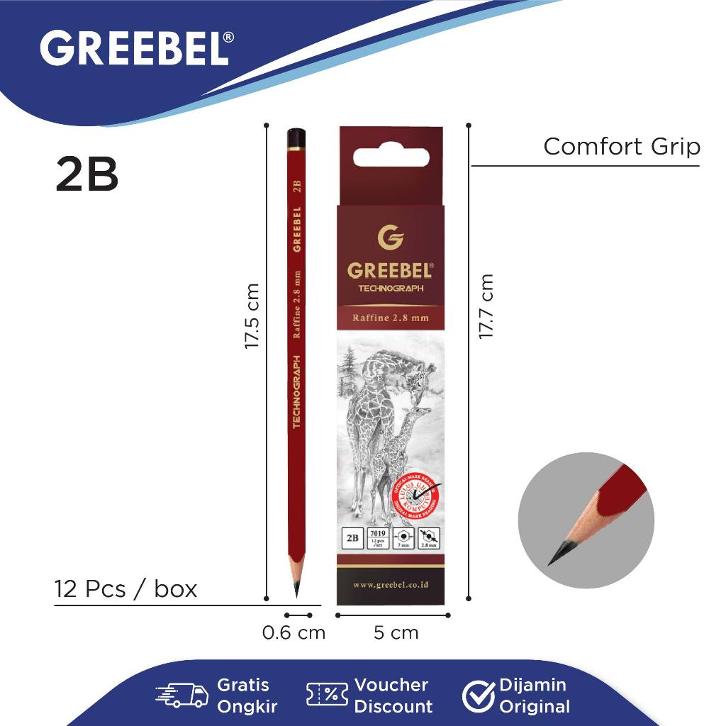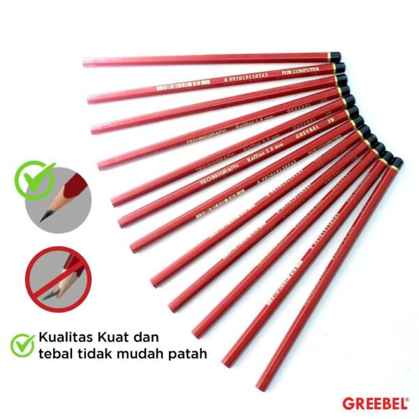 > Lead pensil 2B Greebel lebih kuat sehingga tidak mudah patah.