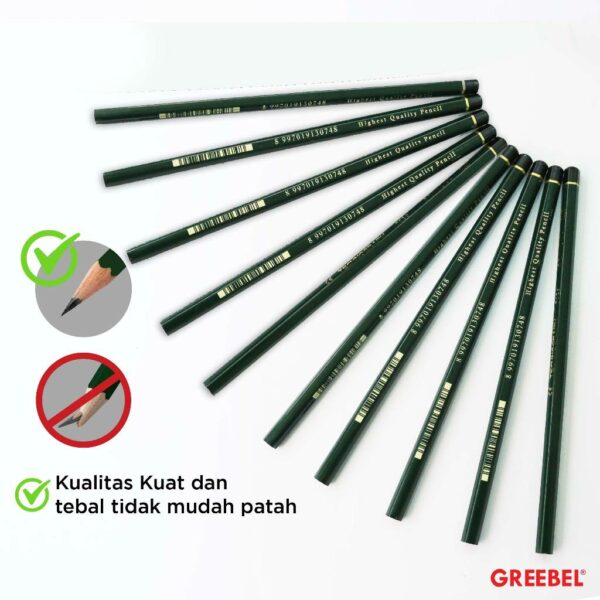 > Lead pensil HB Greebel lebih kuat sehingga tidak mudah patah.