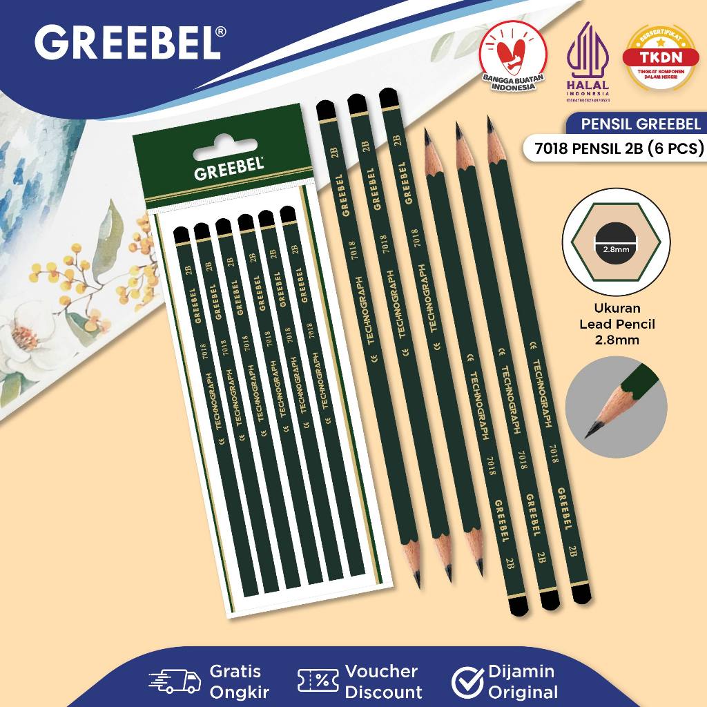 GREEBEL Pensil Tulis 2B 7018 (6PCS/SET) Pensil Kayu Ujian / Pencil Grafit Graphite / Pensil Gambar