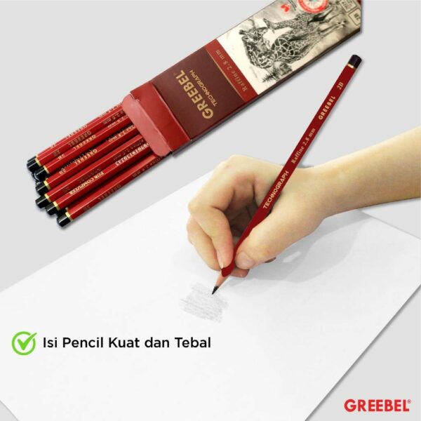> Lead Yang Kuat: Lead Pensil 2b Greebel Lebih Kuat Dan Tidak Mudah Patah, Meskipun Diberi Tekanan Saat Menulis.