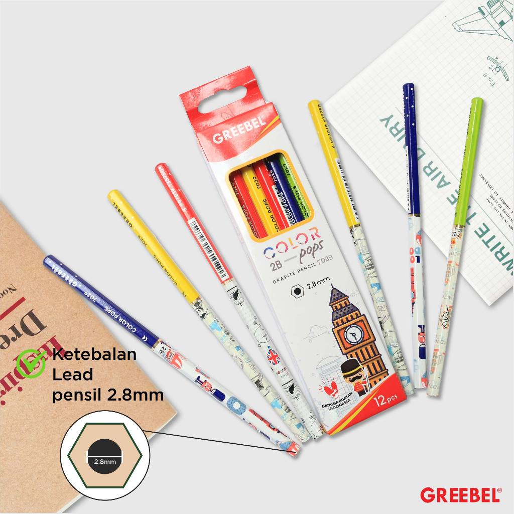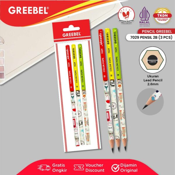 GREEBEL Pensil Tulis 2B 7029 (3PCS/SET) Pensil Kayu Ujian / Pencil Grafit Graphite / Pensil Gambar