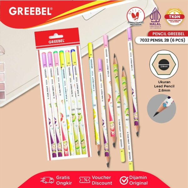 GREEBEL Pensil Tulis 2B 7032 Fun Fruite (6PCS/SET) Pensil Kayu Ujian / Pencil Grafit Graphite / Pensil Gambar