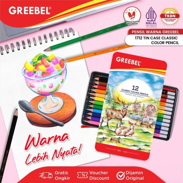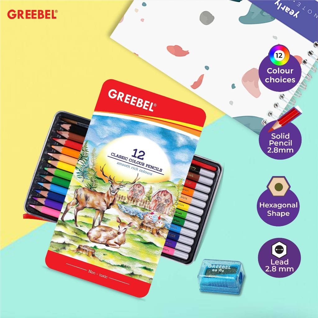 GREEBEL Pensil Warna Classic Tin Case adalah pilihan terbaik untuk menghasilkan karya seni yang hidup dan penuh warna. Dengan kualitas premium dan kepraktisannya, pensil warna ini ideal untuk segala usia dan kebutuhan seni.