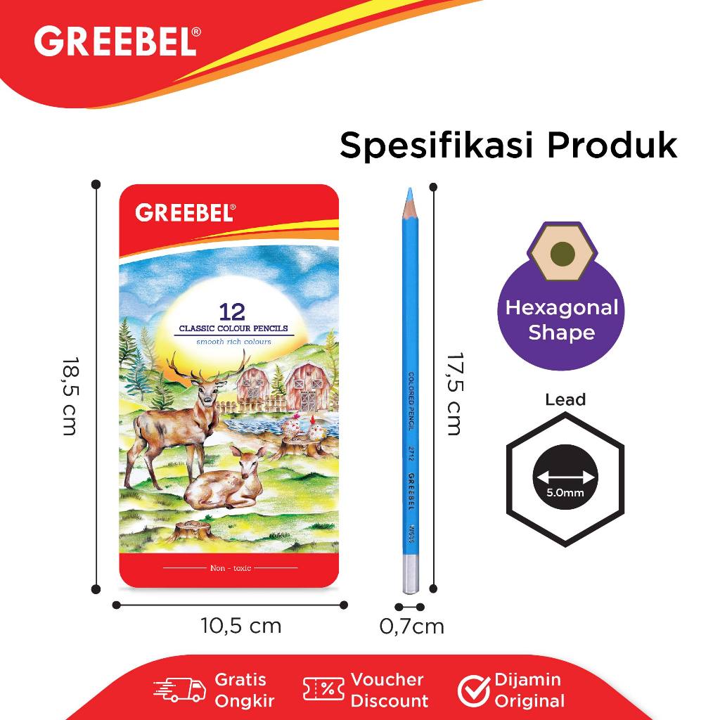 GREEBEL Pensil Warna / 12 Warna Classic Color Tin Case (1712) / Colored Pencil / Warna Lebih Nyata