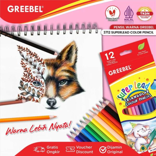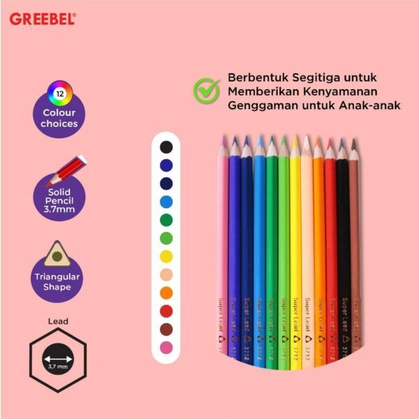 Nikmati pengalaman mewarnai yang menyenangkan dengan GREEBEL Pensil Warna Super Lead Triangular, pilihan terbaik untuk hasil karya yang luar biasa!