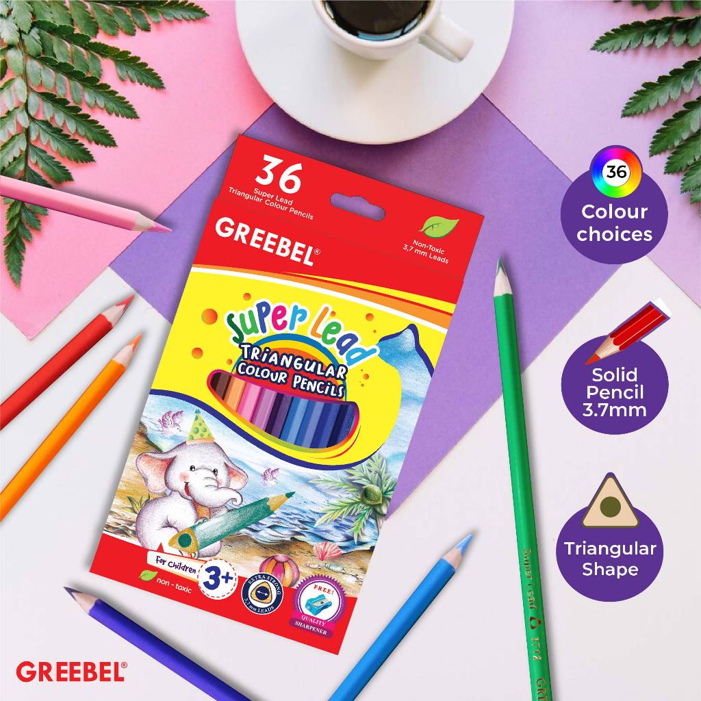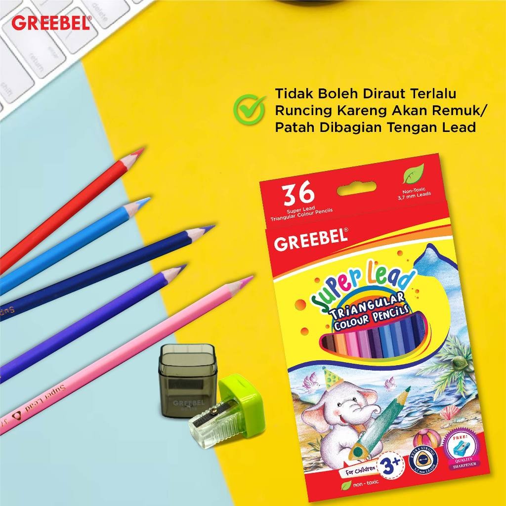 Nikmati pengalaman mewarnai yang menyenangkan dengan GREEBEL Pensil Warna Super Lead Triangular, pilihan terbaik untuk hasil karya yang luar biasa!