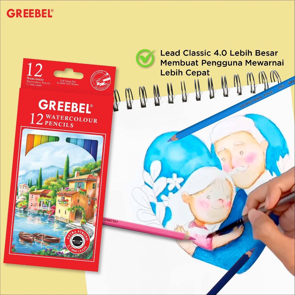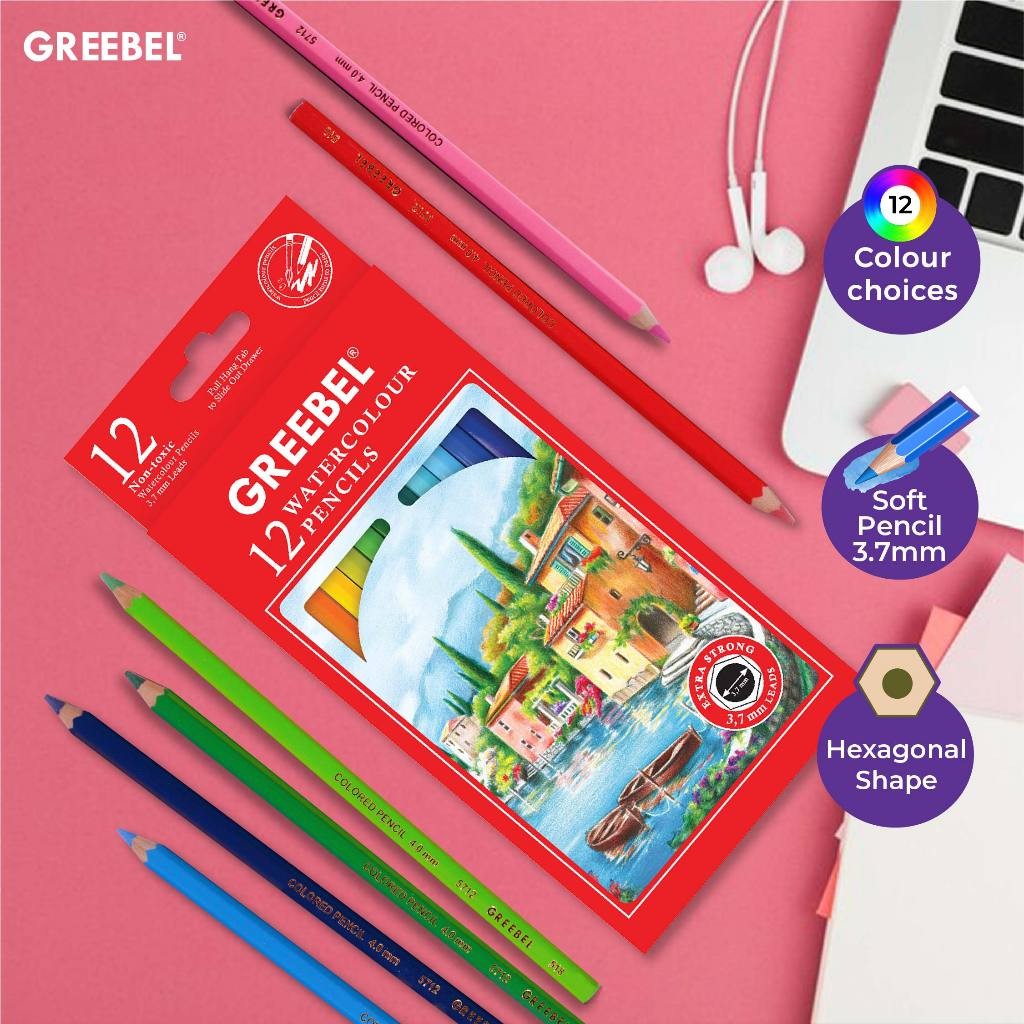 GREEBEL Pensil Warna Anak WATERCOLOR 6712-3.7 MM (ISI 12)