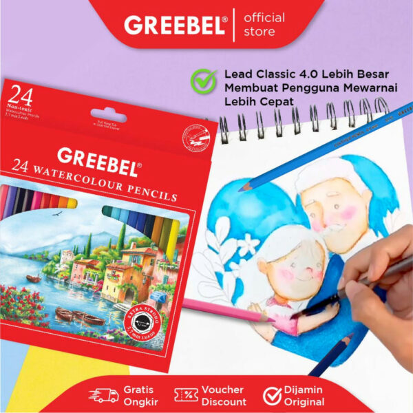 GREEBEL Pensil Warna Anak WATERCOLOR 6724-3.7 MM (ISI 24)