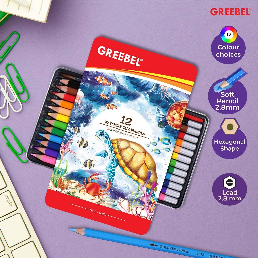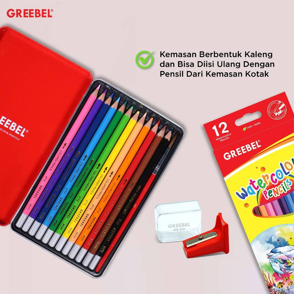 GREEBEL Pensil Warna Watercolor Tin Case adalah solusi sempurna untuk hasil mewarnai dengan efek cat air yang memukau. Dengan kemasan kaleng yang praktis pensil ini dirancang untuk memenuhi kebutuhan seni kreatif Anda.