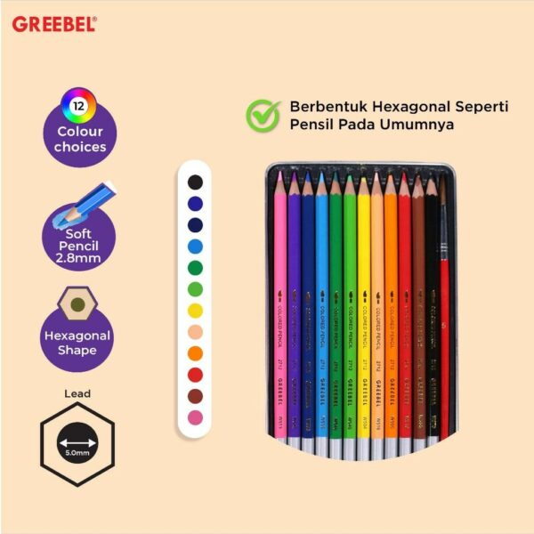 GREEBEL Pensil Warna / Colored Pencil / Watercolor Tin Case 12 Warna (2712) / Warna Lebih Nyata