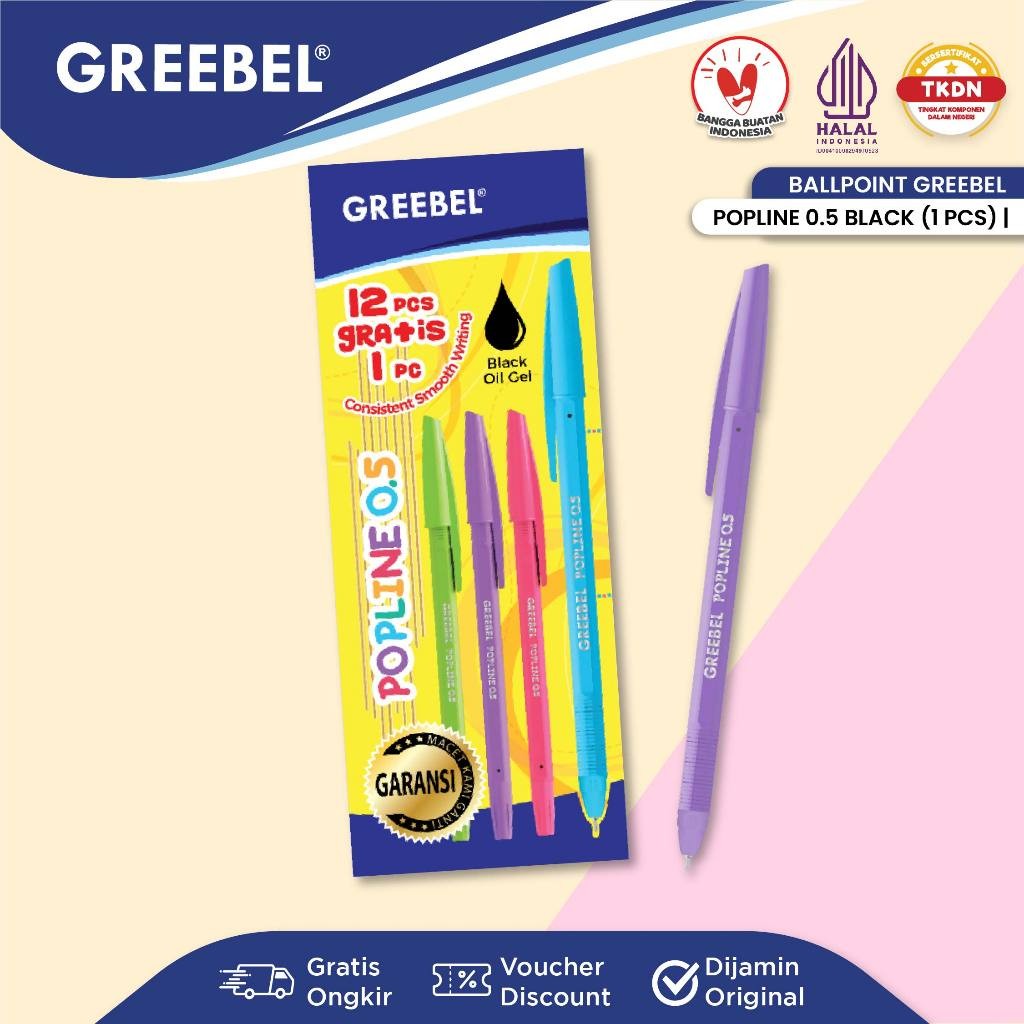 GREEBEL Pulpen Ballpen / Popline 0.5 Hitam (6PCS/SET) / Ballpoint Bolpen Bolpoin Pena Gel