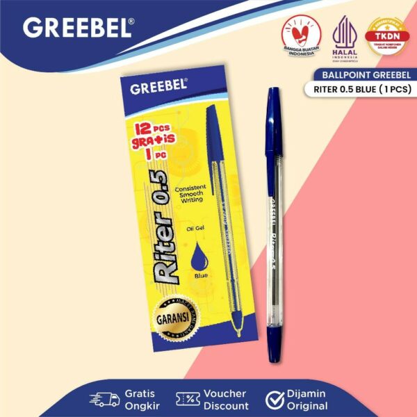 GREEBEL Pulpen Ballpen / Riter 0.5 Blue (1PCS) / Ballpoint Bolpen Bolpoin Pena Gel