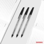 -Didesign dengan body ballpoint berwarna putih transparan dan dikombinasikan dengan tutup warna hitam.