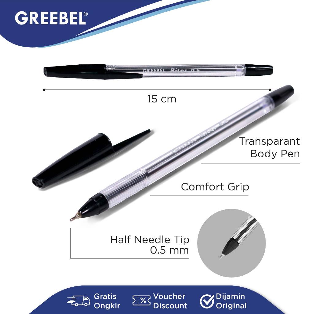 GREEBEL Pulpen Ballpen / Riter 0.5 Hitam (1PCS / SET) / Ballpoint Bolpen Bolpoin Pena Gel