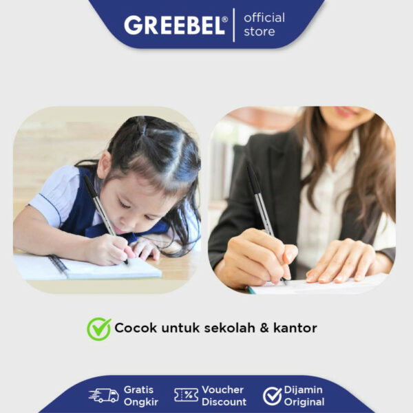 PULPEN GREEBEL ADALAH SOLUSI SEMPURNA UNTUK KEBUTUHAN MENULIS ANDA. DENGAN TEKNOLOGI ANTI MACET, DESAIN KOKOH, DAN Tinta BERKUALITAS TINGGI, PULPEN INI MEMASTIKAN PENGALAMAN MENULIS YANG NYAMAN DAN PROFESIONAL