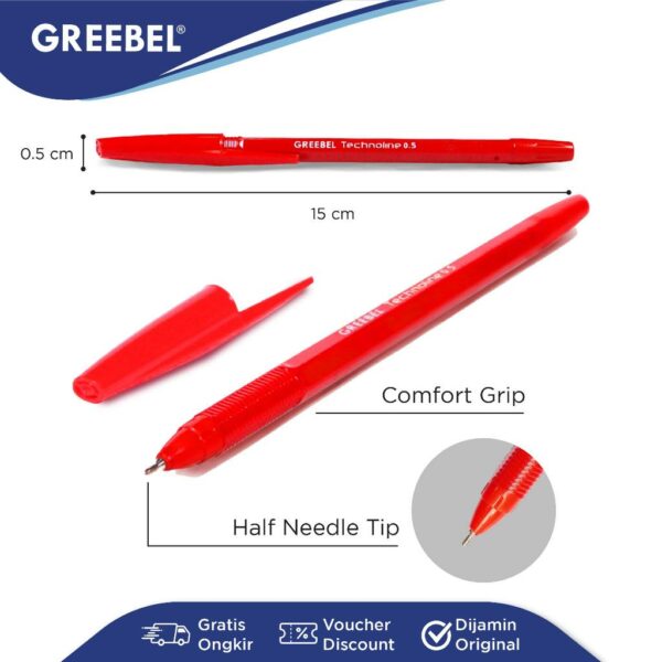 GREEBEL Pulpen Ballpen / Technoline 0.5 Merah (3PCS/SET) / Ballpoint Bolpen Bolpoin Pena Gel