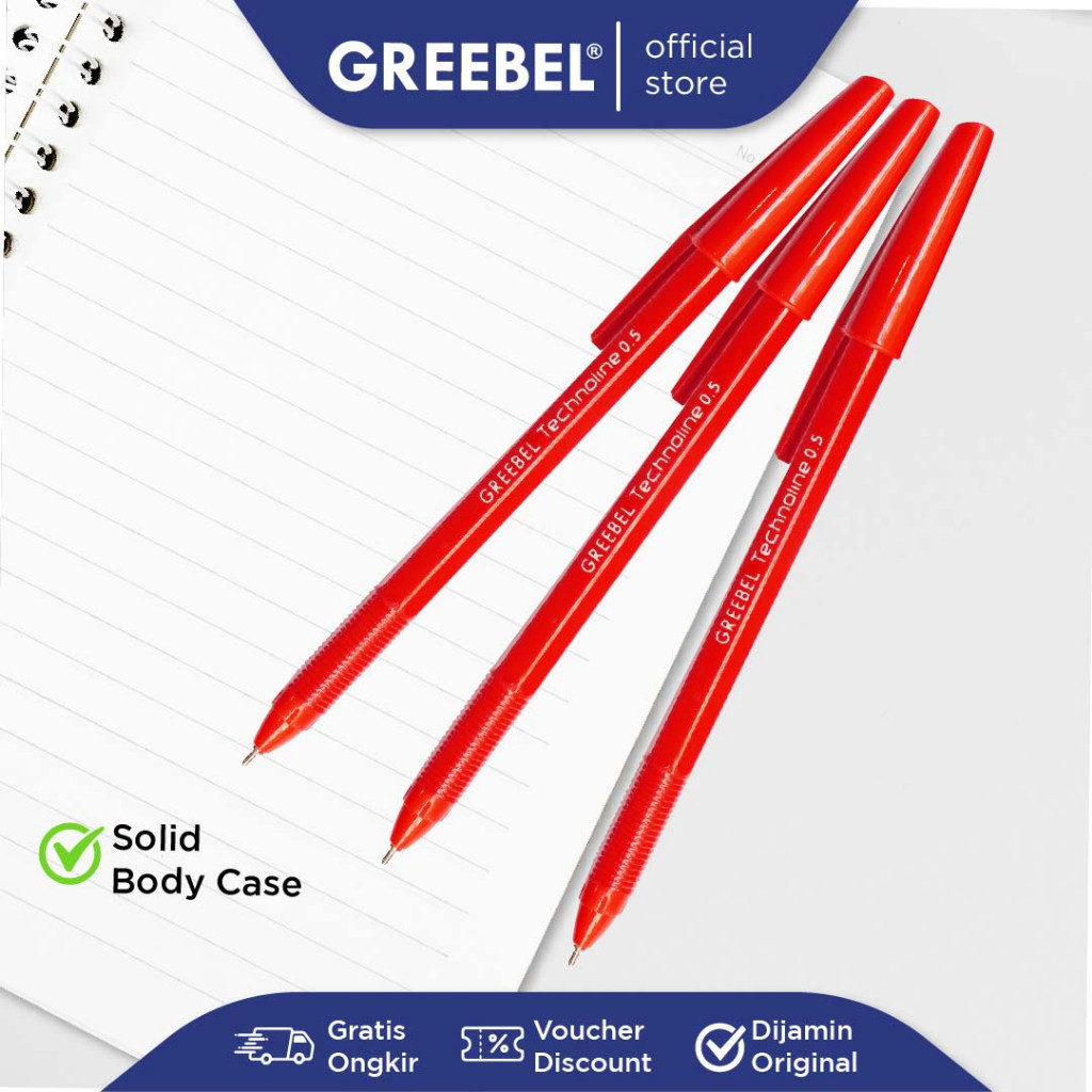 GREEBEL PULPEN BALLPEN / Technoline 0.5 Merah (6PCS/SET) / Ballpoint Bolpen Bolpoin Pena Gel
