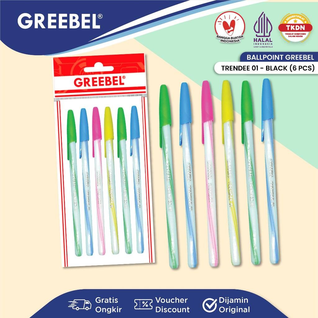 GREEBEL Pulpen Ballpen / Trendee 01 Hitam (6PCS/SET) / Ballpoint Bolpen Bolpoin Pena Gel