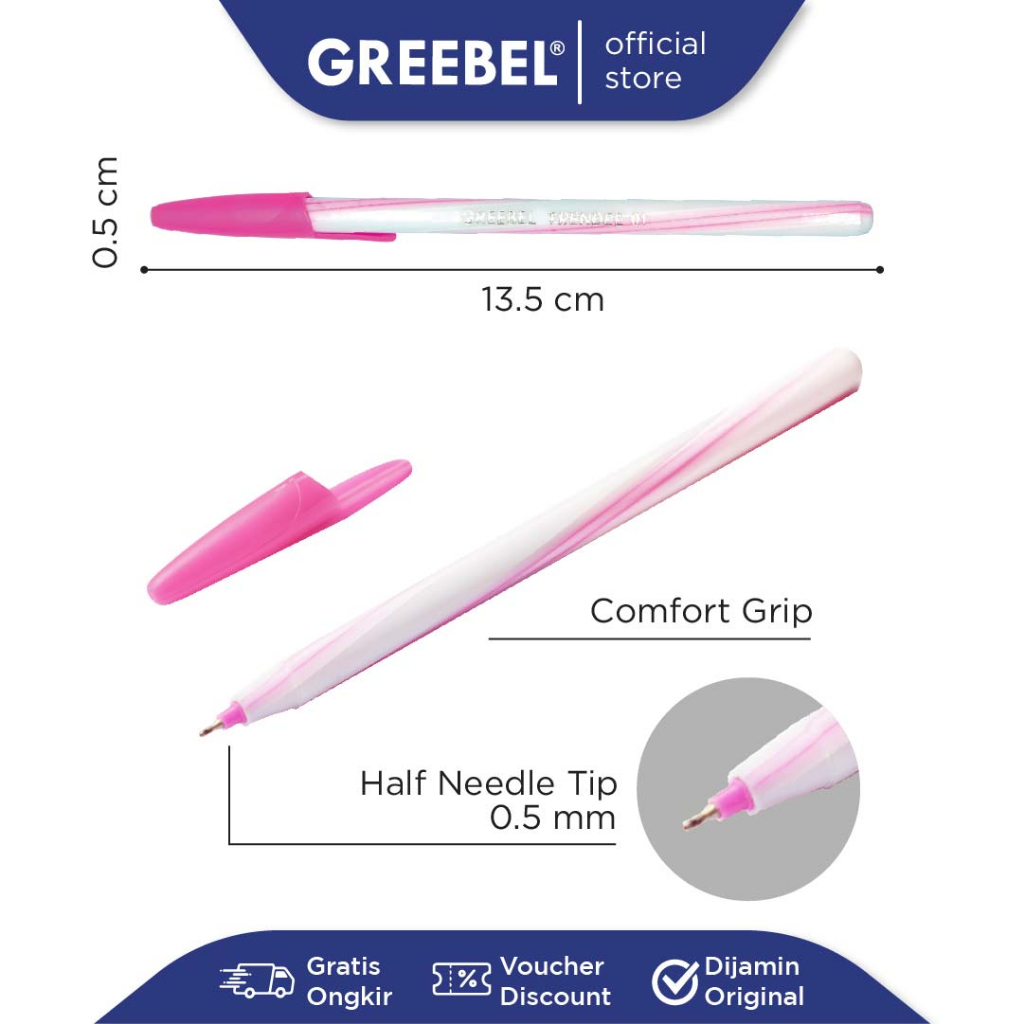 PULPEN GREEBEL ADALAH SOLUSI SEMPURNA UNTUK KEBUTUHAN MENULIS ANDA. DENGAN TEKNOLOGI ANTI MACET, DESAIN KOKOH, DAN Tinta BERKUALITAS TINGGI, PULPEN INI MEMASTIKAN PENGALAMAN MENULIS YANG NYAMAN DAN PROFESIONAL