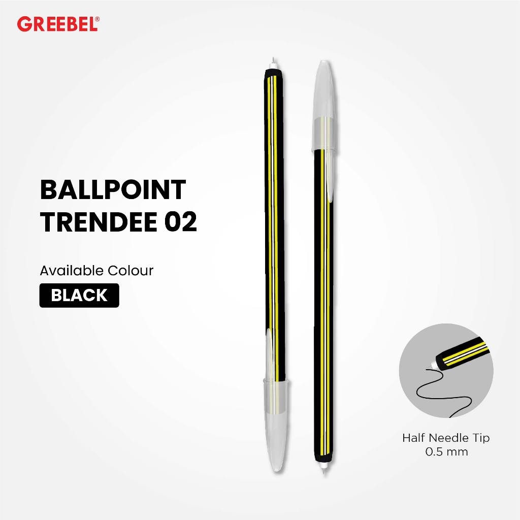 GREEBEL Pulpen Ballpen / Trendee 02 Hitam (1PCS) / Ballpoint Bolpen Bolpoin Pena Gel