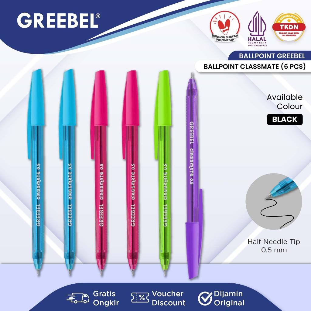 GREEBEL Pulpen Ballpoint / Classmate 0.5 Hitam (6PCS/SET) / Pulpen Greebel / Pena / Ballpen