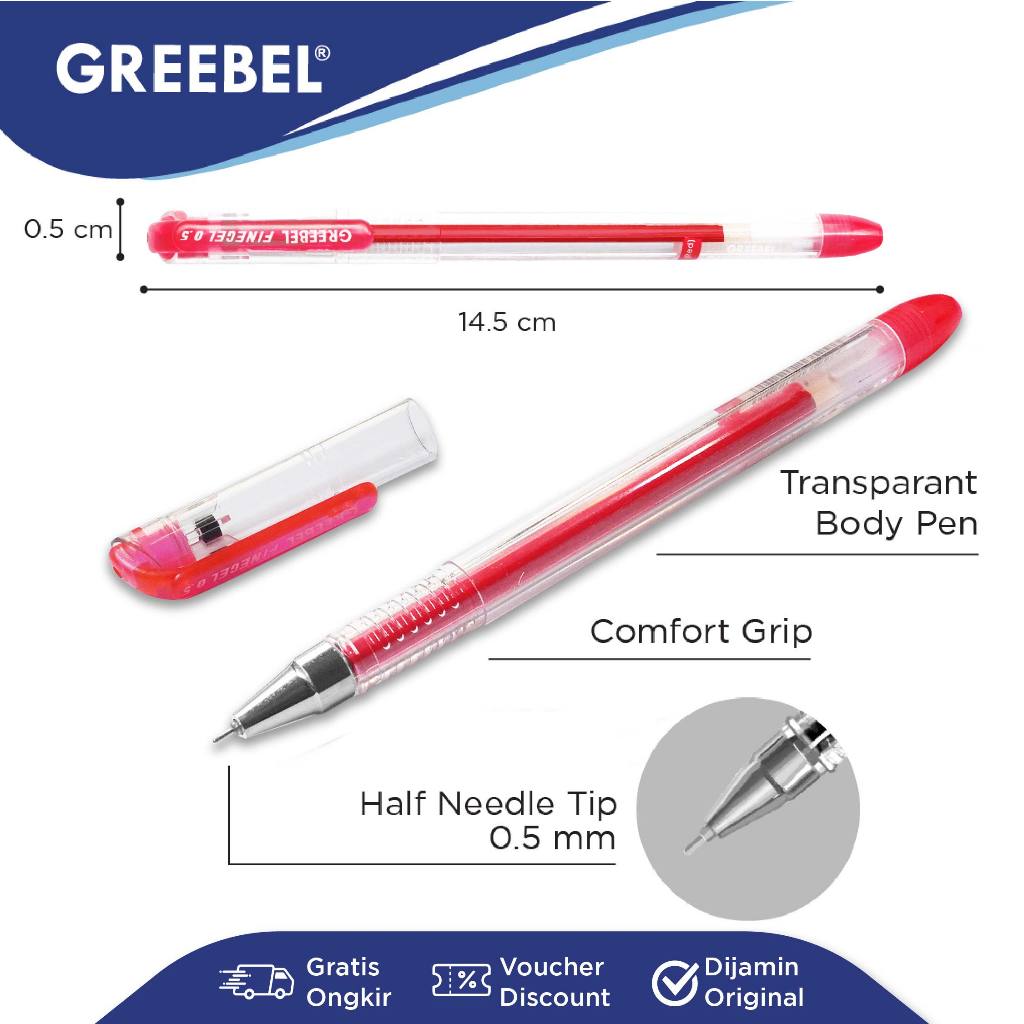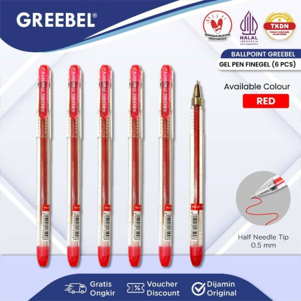 GREEBEL Pulpen Gel / Gel Pen Fine Gel 0.5 Merah (6PCS/SET) / Ballpen Gel Ballpoint Bolpen Bolpoin Pena Gel