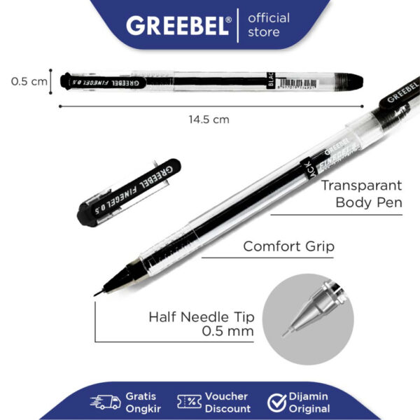GREEBEL Pulpen Gel / Gel Pen Fine Gel Hitam (3PCS/SET) Ballpen Gel Ballpoint Bolpen Bolpoin Pena Gel