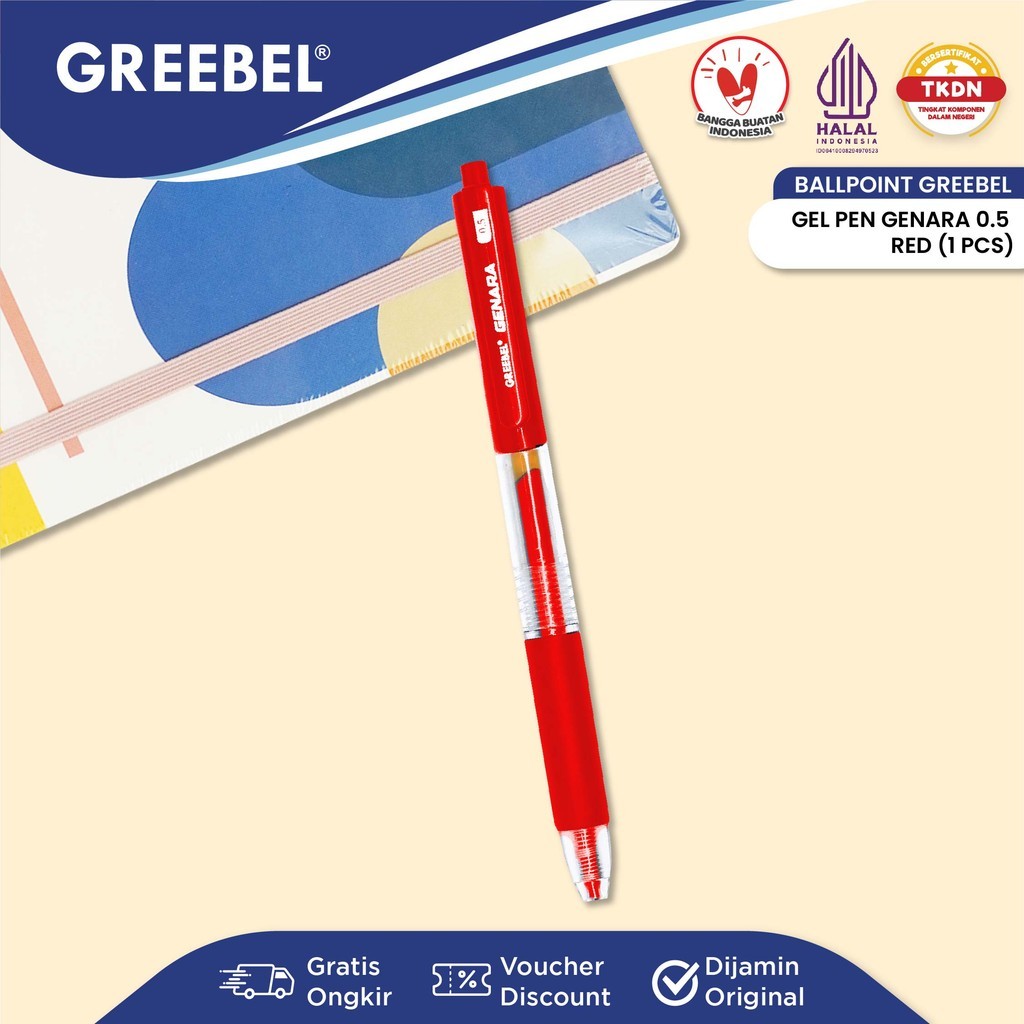 GREEBEL Pulpen Gel / Gel Pen Genara GP-508 0.5 Merah (1PCS) / Ballpoint Bolpen Bolpoin Pena Gel