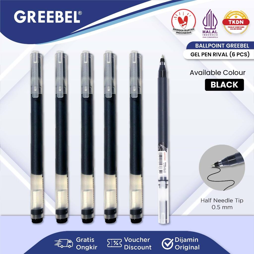 GREEBEL Pulpen Gel / Gel Pen Rival GP-502 0.5 Hitam (6PCS/SET) / Ballpen Gel Ballpoint Bolpen Bolpoin Pena Gel