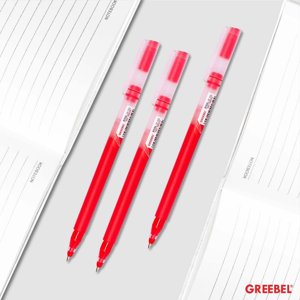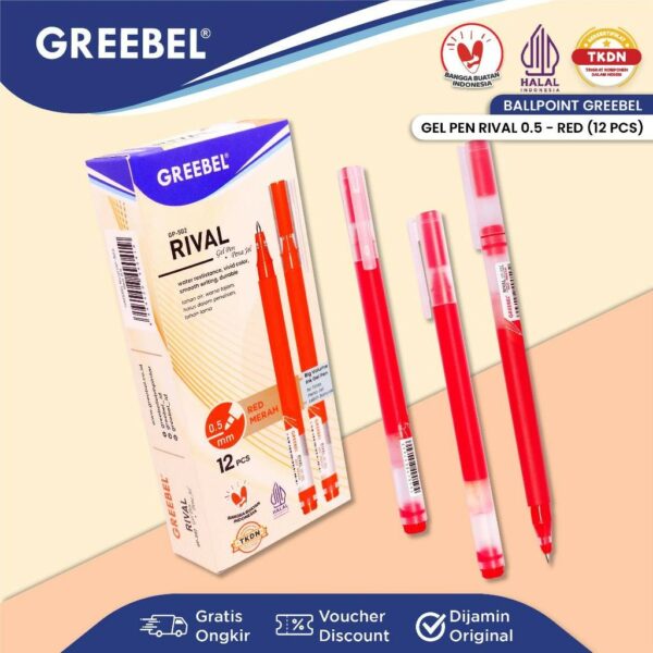 GREEBEL Pulpen Gel / Gel Pen Rival GP-502 0.5 Merah (12PCS/SET) / Ballpen Gel Ballpoint Bolpen Bolpoin Pena Gel