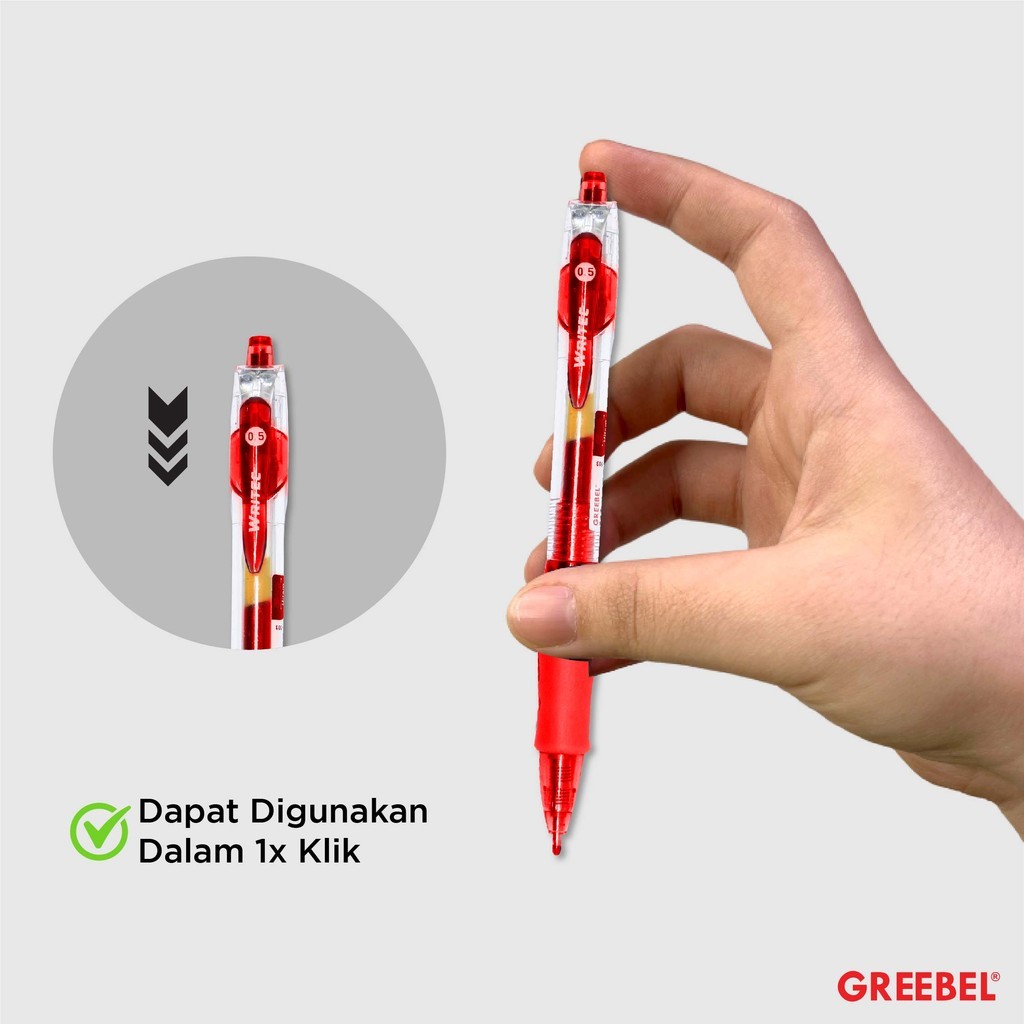 GREEBEL Gel Pen GP-503 Writec 0.5 Merah (6PCS/SET) Pulpen Gel / Gel Pen Pulpen Greebel / Pen Gel / Ballpoint Gel