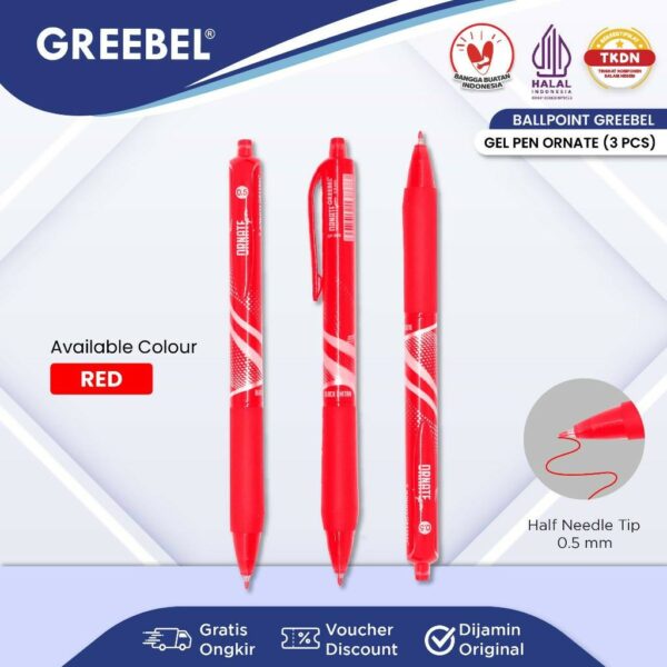 Greebel Pulpen Gel / Gel Pen GP-505 Ornate Merah 0.5 (3PCS/SET)
