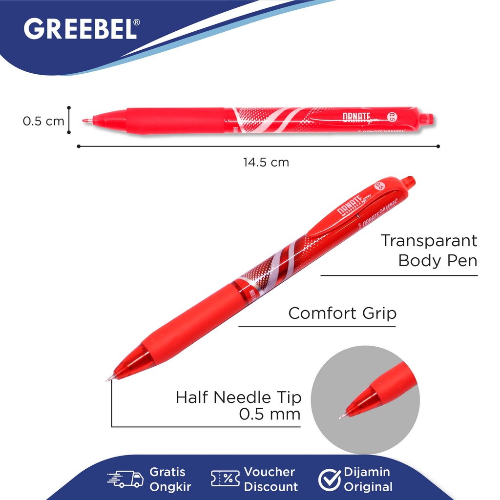 Greebel Pulpen Gel / Gel Pen GP-505 Ornate Merah 0.5 (6PCS/SET)
