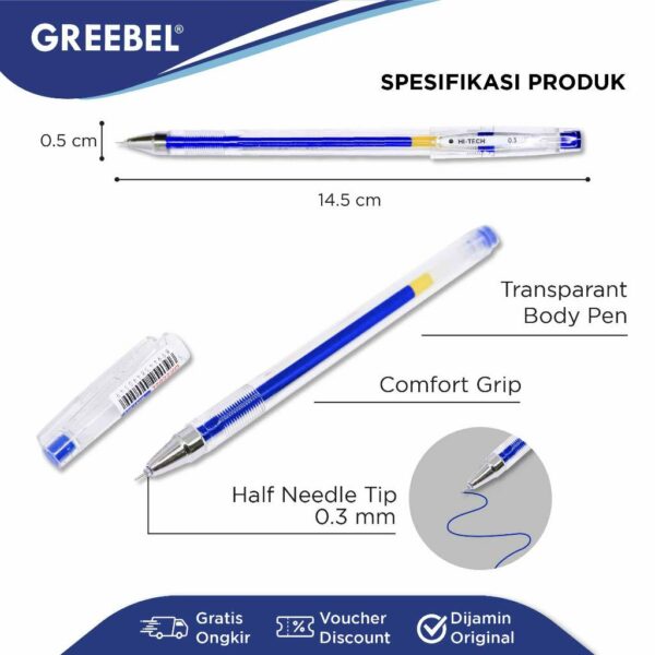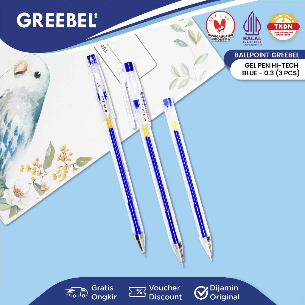 GREEBEL Pulpen Gel / Gel Pen GP-506 Hi-tech Biru 0.3 (3PCS/SET) Ballpen Gel Ballpoint Bolpen Bolpoin Pena Gel