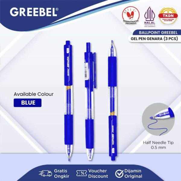 GREEBEL Pulpen Gel / Gel Pen Genara GP-508 0.5 Biru (3PCS/SET) / Ballpoint Bolpen Bolpoin Pena Ge