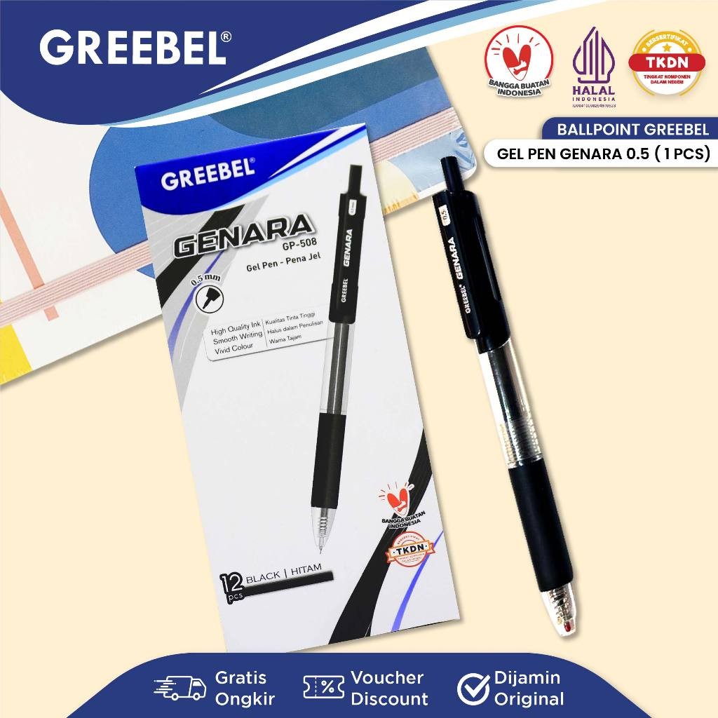 GREEBEL Pulpen Gel / Gel Pen Genara GP-508 0.5 Hitam / Ballpen Gel Ballpoint Bolpen Bolpoin Pena Gel