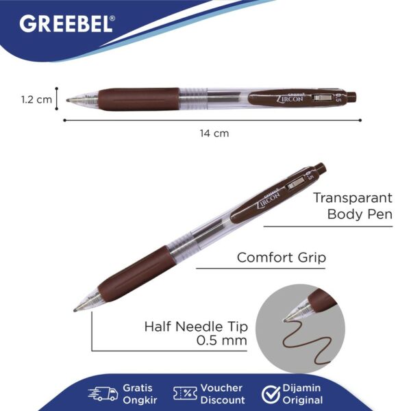 GREEBEL Pulpen Gel / Gel Pen GP-509 Zircon 0.5 Coklat (3PCS/SET) / Ballpen Gel Ballpoint Bolpen Bolpoin Pena Gel
