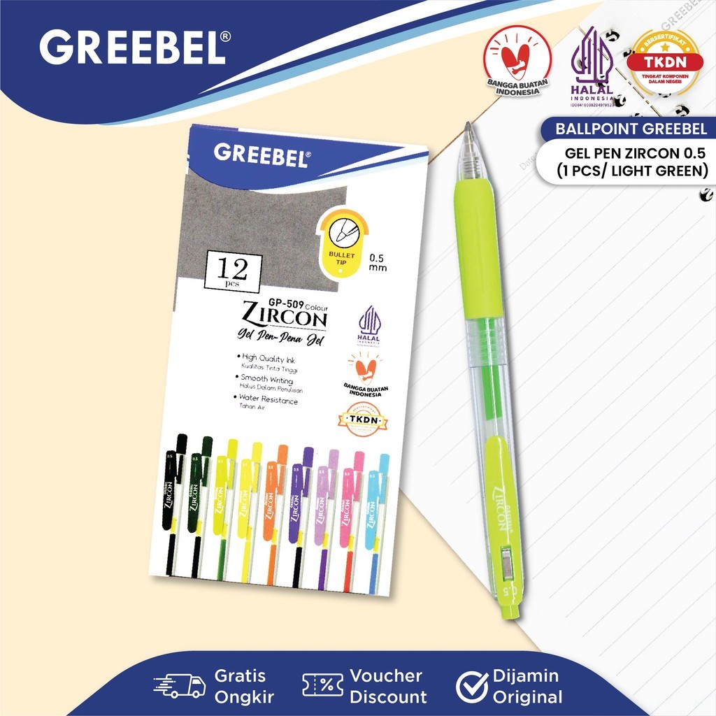 GREEBEL Pulpen Gel / Gel Pen GP-509 Zircon 0.5 Light Green (1PCS) Ballpen Gel Ballpoint Bolpen Bolpoin Pena Gel