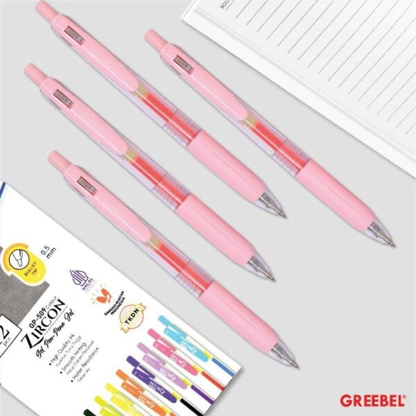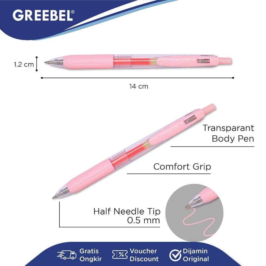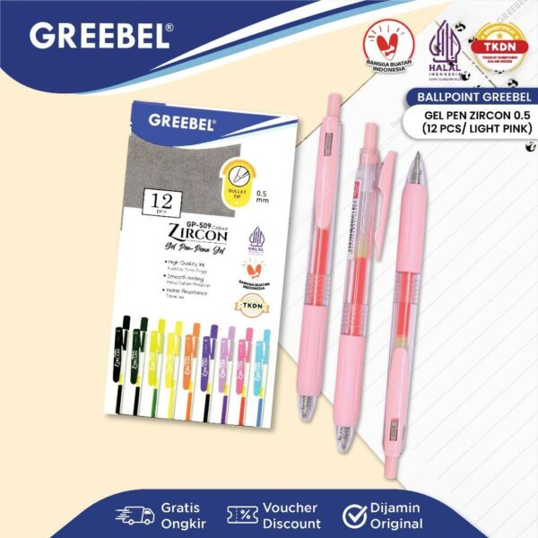 GREEBEL Pulpen Gel / Gel Pen Zircon GP-509 0.5 Light Pink (12PCS/SET) / Ballpen Gel Ballpoint Bolpen Bolpoin Pena Gel
