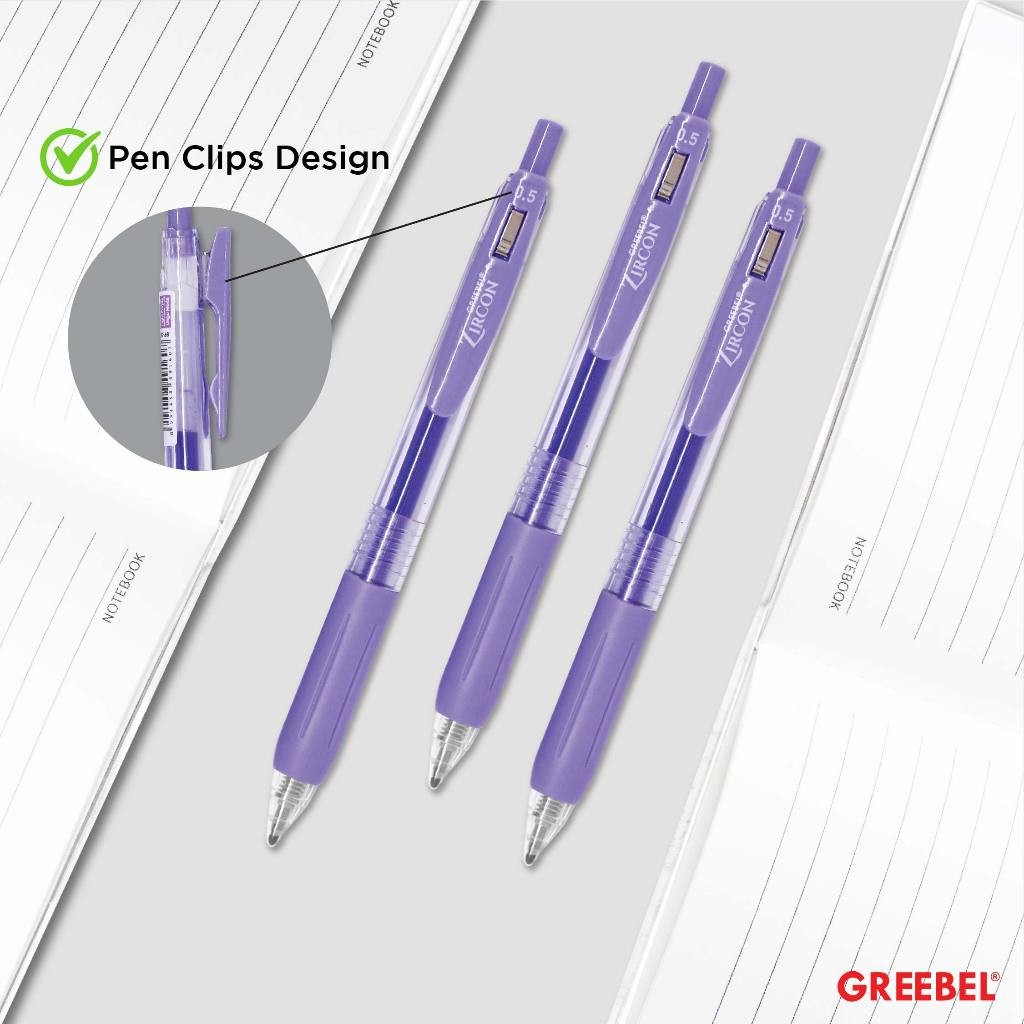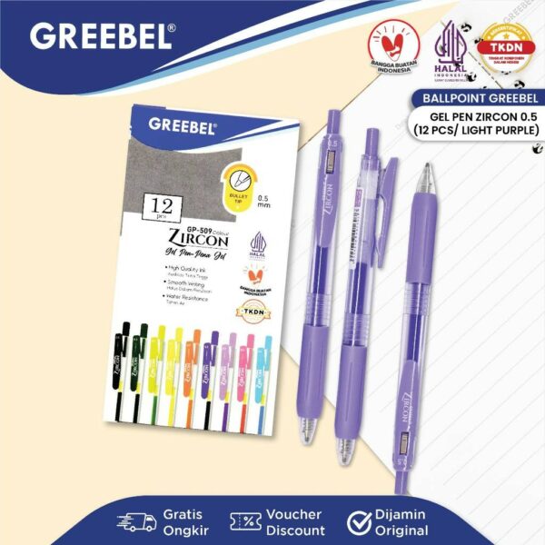 GREEBEL Pulpen Gel / Gel Pen Zircon GP-509 0.5 Light Purple (12PCS/SET) / Ballpen Gel Ballpoint Bolpen Bolpoin Pena Gel