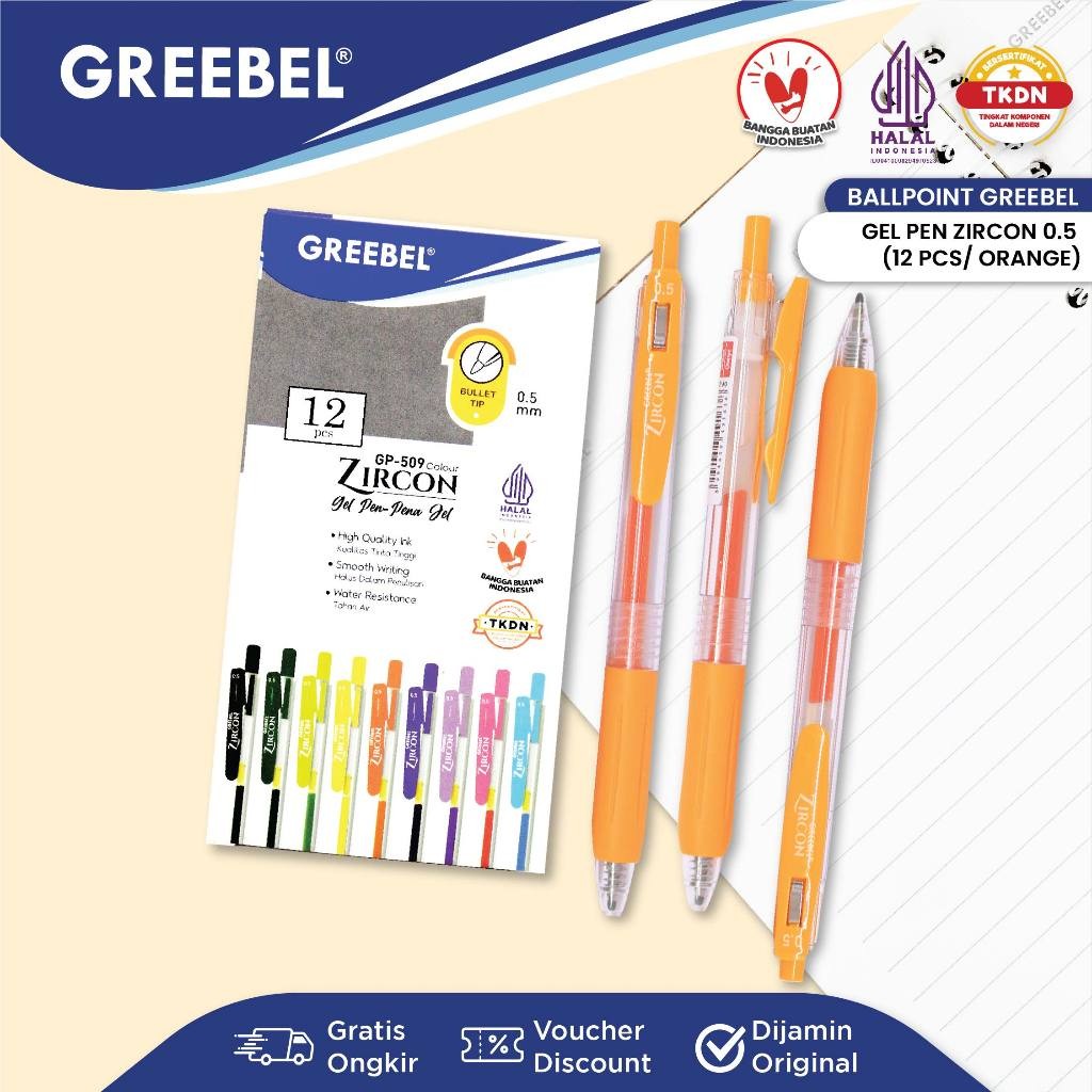 GREEBEL Pulpen Gel / Gel Pen Zircon GP-509 0.5 Orange (12PCS/SET) / Ballpen Gel Ballpoint Bolpen Bolpoin Pena Gel