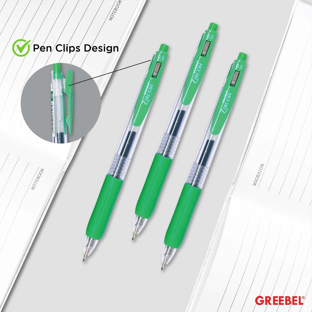 GREEBEL Pulpen Gel / Gel Pen GP-509 Zircon Hijau 0.5 (3PCS/SET) / Ballpen Gel Ballpoint Bolpen Bolpoin Pena Gel