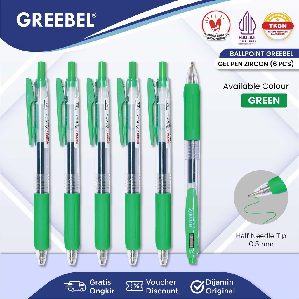 GREEBEL Pulpen Gel / Gel Pen GP-509 Zircon Hijau 0.5 (6PCS/SET) / Ballpen Gel Ballpoint Bolpen Bolpoin Pena Gel