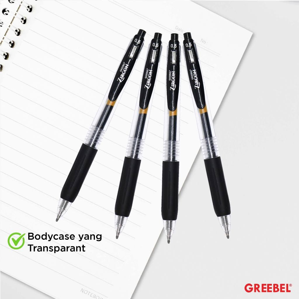 GREEBEL Pulpen Gel / Gel Pen GP-509 Zircon Hitam 0.5 (6PCS/SET) / Ballpen Gel Ballpoint Bolpen Bolpoin Pena Gel