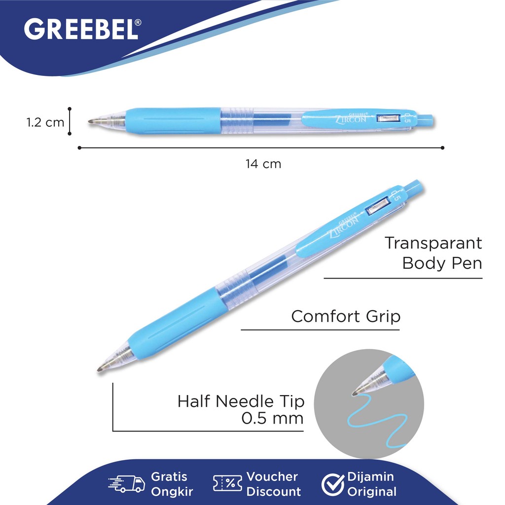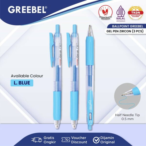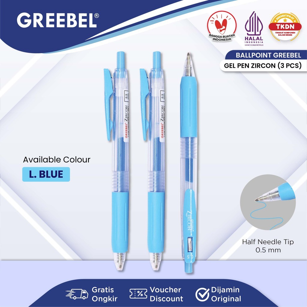 GREEBEL Pulpen Gel / Gel Pen GP-509 Zircon Light Blue 0.5 (3PCS/SET) / Ballpen Gel Ballpoint Bolpen Bolpoin Pena Gel