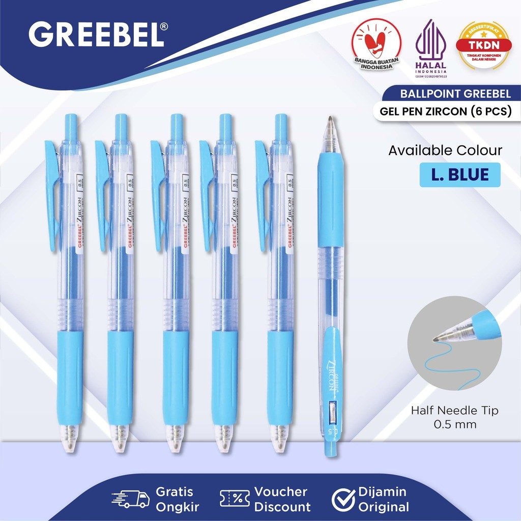 GREEBEL Pulpen Gel / Gel Pen GP-509 Zircon Light Blue 0.5 (6PCS/SET) / Ballpen Gel Ballpoint Bolpen Bolpoin Pena Gel