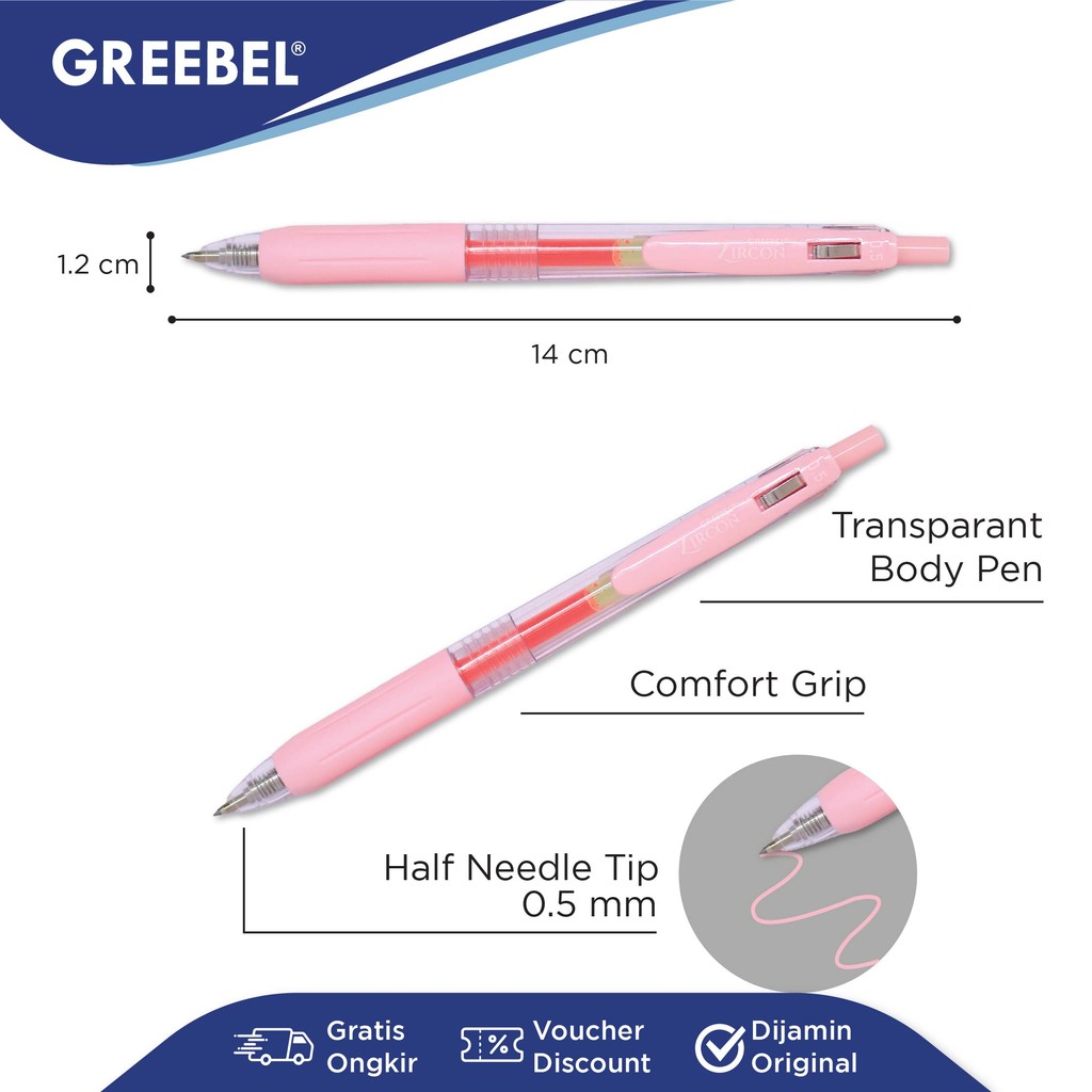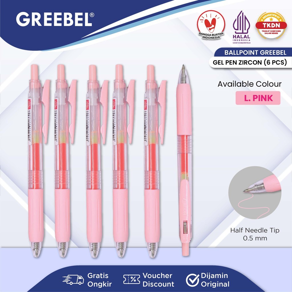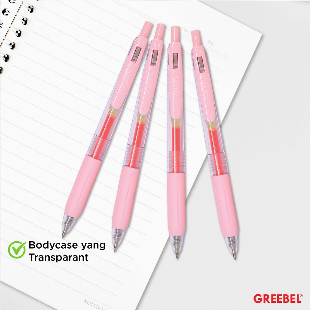 GREEBEL Pulpen Gel / Gel Pen GP-509 Zircon Light Pink 0.5 (6PCS/SET) / Ballpen Gel Ballpoint Bolpen Bolpoin Pena Gel